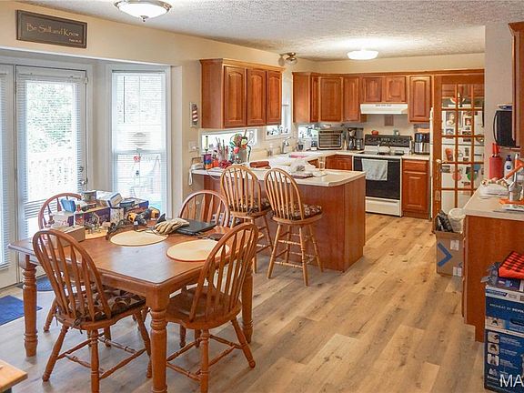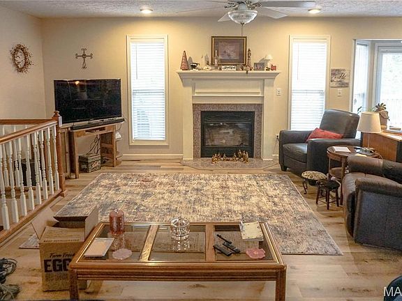 Well-maintained all-brick ranch in Woodcrest Estates with 3 bedrooms, 2 baths, and 1,599 m/l sq ft. The living room features a gas fireplace and flows into the kitchen, which includes an electric range, dishwasher, and refrigerator. Vinyl plank flooring runs through the kitchen, living, and entry areas. The primary bedroom offers tray ceilings and a spacious bath with jetted tub and separate shower. A pantry area is located in the utility room for added storage. The part basement is unfinished and plumbed for a bath, offering future expansion potential. Enjoy outdoor living on the 10x26 deck. Additional highlights include vinyl tilt-out windows, ceiling fans, and a 2-car garage. Conveniently located near Rolla’s Acorn Trail for easy access to biking and walking paths.