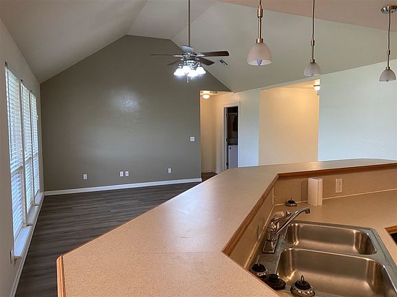 Move in ready! The soaring vaulted ceilings in the living room along with a wall of windows across the backside of the home make it open and inviting! Many updates include fresh paint, new smooth surface wood look floors through out the living room and 2 bedrooms. New carpet in the Master bedroom and an automatic lawn sprinkler system. The expansive Kitchen has a large pantry, a wrap around bar and a gas stove. Off of the dining area is a shady large covered patio. New carpet has been installed in the master bedroom and an automatic lawn sprinkler system has been installed. You will be pleasantly surprised by the amount of storage space in this home.