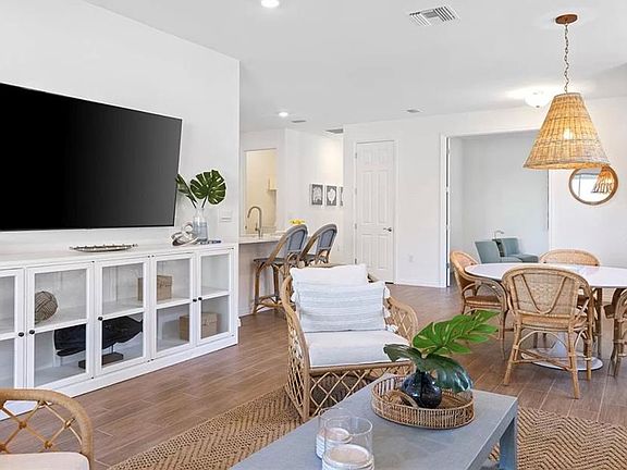 This perfect villa sits on the lake with a beautiful sunset facing view from the back lanai. It comes TURN-KEY ready, designer furnished in a contemporary coastal style, and is filled with finish upgrades. Elevated elements include wood-look porcelain floors, quartz counters, upgraded pendants and low profile ceiling fans, a two car epoxied garage, and more. The villa has 2 bedrooms, each with their own bathroom, and a den as a bonus flex space. This happy gated community is gaining traction as sweet spot living in between Marco Island and Downtown Naples. It offers a clubhouse, fitness center, resort-style pool, as well as tennis and pickle ball courts. Owners love Enbrook’s flexibility to serve as a RENTAL INVESTMENT, as the community allows up to 4 leases a year! Pristinely kept & move-in ready, don’t miss the opportunity to own one of Enbrook’s best homes.
