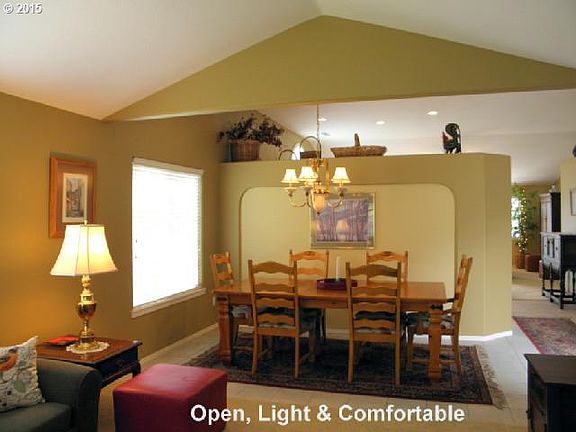 Lovely,well maintained,clean and very livable floor plan with gorgeous yard.Vaulted ceiling in living/dining room, kitchen/family room and master suite.Kitchen offers tile floor, pantry,maple cabinets and slab granite.Family room with gas fireplace,adjoins kitchen.Master has window seat, walk-in and full bath. Large deck with Wisteria arbor and view.Huge garage with man door,2 hobby benches and full wall of nice cabinets.She's a beauty!