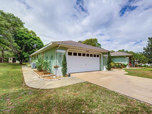 Spacious 3 Bedroom, 2.5 bath, 2 car garage w over 2100 liv sq ft pool home on 1/2 acre. 15x28 pool and the expansive lanai is a great place for entertaining or to simply relax. Most rooms in this home overlook the pool and huge private landscaped yard. From the moment you enter you will be impressed! Vaulted ceiling; wide sliders for view of yard and pool. Huge great room/dining room; wood laminate flooring. Kitchen has lots of cabinets, plenty of counter-space, and eating nook.. Large Master Bedroom suite features walk-in closets, soaker tub, dual sink vanity and separate shower. Pool bath off lanai. Store boat and RV in the PRIVATE Backyard. This home IS MOVE IN READY with plenty of extras! Located close to shopping, Suncoast parkway, and short drive to the Gulf.