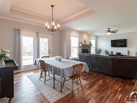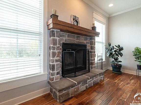 Better than new home in Baldwin City! Nestled in a cul-de-sac with manicured lawn. Open concept living with Acacia hardwood flooring, stunning concrete countertops, stellar range hood, gas stove with convection oven, and a gas fireplace these are just a few of the features this home has to offer! Walk out basement is ready for finish and roughed in for a bathroom! Enjoy a quiet woodsy scene off the large back deck! Home is eligible for Baldwin City Neighborhood Revitalization Program.