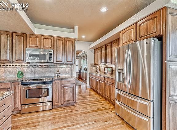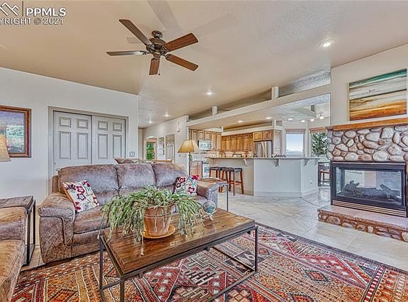Exquisite Craftsman style home in the area of Greenland Preserve in Monument on a prime view lot with almost an acre of land. Thoughtfully laid out floor plan that features French doors that lead into the office (or 5th bedroom) with a built-in bookcase and a formal dining room with tapered ceiling plus built-in cabinets just off the entrance of the home. The great room boasts a 3 sided river rock fireplace, a built-in entertainment center surrounded by windows and is open to the spacious gourmet kitchen with a wraparound center island and features granite countertops, stainless steel appliances, a breakfast nook plus a hearth room that walks-out to the deck were you can enjoy the quiet of the mountain and forest views. The master retreat features a walk-out to deck, a walk-in closet and the attached 5 piece master spa with jetted tub. The walk-out lower level family room is perfect for large gatherings with a gas fireplace, a wet bar with wine fridge plus plenty of built-in cabinets. Completing the lower level is a full size bath with double sinks, three additional bright and airy bedrooms all with walk-in closets and one having a built-in desk with cabinets. This amazing home is perfect with multiple outdoor living spaces and tons of privacy on almost an acre. Easy access to I-25, downtown Monument and Palmer Lake with an easy commute to both Denver and Colorado Springs.