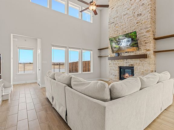 Stunning 2025 built 5 bedroom, 4.5 bath home in beautiful new subdivision of Walden Pond West on a premium lot with serene pond views! This beauty offers a spacious layout with the primary suite on the first floor, featuring a spa like ensuite with garden tub, separate shower and dual sinks A second bedroom downstairs is perfect for guests or multi gen living. Upstairs features three large bedrooms and an open loft ideal as a game room or second living space. Designed for modern living, this home boasts smart home technology, quartz countertops, wood look tile floors, tankless water heater, 3 bidet toilets and a grand stone fireplace that soars from floor to ceiling with gas logs for cozy ambiance. Other features include 36 inch shaker cabinets, pot and pan pull out drawers, quartz island with pop up outlet and a trash can roll out drawer plus a large utility room with sink. Located just outside city limits for lower taxes yet close to shopping, schools, and the upcoming resort style amenity center, this home delivers luxury, lifestyle, and location all in one. This is a new community with an upcoming fabulous new amenity center with sparkling pool in development including three ponds, walking trails and playgrounds. There is NO MUD tax in this new development.