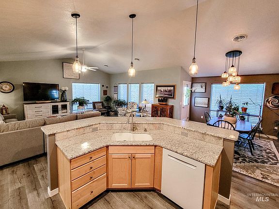 Live in the country just minutes from town! This beautiful custom home on 3.1 acres has picture perfect unobstructed mountain views! The open concept main level with solid surface floors, granite countertops & vaulted ceilings is spacious and cozy at the same time! The master suite is large with a walk in closet and ample storage. With three bedrooms plus a den, you'll have plenty of office or hobby space. The pasture and yard are fenced. The attached garage is oversized. You'll enjoy the deck while you appreciate the peace and quiet, style and function of this special home.