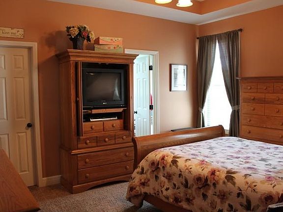 Beautiful home in Warrensburg's premier family neighborhood, Cayhill subdivision. Approximately 1600 sf on main level, including Master Suite and 2 kids rooms/bathroom, with approx. 1200 sf finished in basement with additional bedroom, full bath, bar, and office that could be 5th (windowless) bedroom. Home features beautiful deck overlooking wildlife area, (not your neighbors back yard), and full walkout basement to patio and backyard. Firepit, storage shed, young kid playstation and koi pond compliment exterior features. Garage is 2 car with additional room for work area and storage shelves. Inside modern amenities, with cathedral ceiling in living room and fans throughout. All kitchen appliances are in great condition, including negotiable refrigerator. Quartz countertops in kitchen also. Gas fireplace with flip switch lighting is great feature. House is wired with Cat 5 Ethernet cable for your computing pleasure. Cayhill is an awesome, safe/secure family neighborhood, with preponderance of military families and children. Approximately 8 miles to Whiteman, and 2 miles to Warrensburg. Move In date, Terms and conditions of purchase or lease negotiable, including possibility of Rent to Own (assumable VA). We are selling/renting because we built our final house a few miles down the road and we love Warrensburg and the area. Home is turn-key move-in ready. Contact Jim phone, text or email with questions.