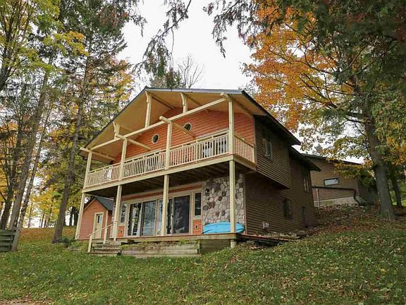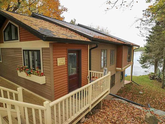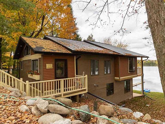 UP NORTH LAKE living at it's FINEST! This stunning two level, walkout LAKEFRONT home with over 100 FEET of PRIVATE frontage is situated atop a large lot in a serene, country like setting with all the benefits of city living (municipal water and sewer). Enjoy idyllic views of serene 85 acre Ice Lake from the open-concept kitchen tastefully remodeled with granite countertops, a farmhouse sink and unique copper finishes. The amazing master suite is complete with a private deck to enjoy your morning cup of coffee as you enjoy the sunrise. Ceramic tile, laminate and and river rock stepping stone in the master bathroom are just some of the luxury finishes that provide that spa-like feeling. Other fabulous features include sliding barn doors, panoramic lakeview windows, walk-in pantry and elegant led lighting. All of this and a 3 car garage! Fantastic year-round or retirement home & successful vacation rental property. Now offering PERSONALLY guided virtual tours of this incredible property. This one of a kind 3 bed/3ba UP NORTH lakefront home won't last long!!!