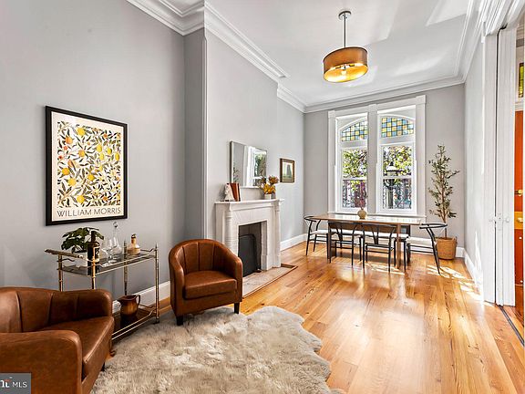 Circa 1881, this beautiful row of dormered Eastlake style townhouses were built on this dead end block of John St in Bolton Hill. So many original details remain including six original mantels, one wood burning fireplace, stained glass, ornate staircase, rear servants staircase and the original coal stove in the kitchen. 1213 John Street is one of the few fully restored homes in Bolton Hill with new historically accurate wood windows and heart pine wood floors, all new wiring, plumbing, two zone heat and cool, roof, kitchen and baths and more! The main level has a living room, dining room, powder room and beautiful modern eat-in-kitchen with bar seating. The second floor has three bedrooms and one full bath. The third floor was used as a primary suite with a walk-in-closet with Bosch washer/dryer combo, cedar closet, primary spa bath with walk-in shower and soaking tub along with a fifth bedroom which would be an excellent home office, nursery or home gym. The basement is unfinished and has a brand new concrete floor, new electric hot water heater, and additional washer/dryer. Perfect basement for storage only. The home has a wonderful, low maintenance bluestone patio for entertaining which is easily accessible directly from the kitchen. Located in the beautiful tree-lined neighborhood in Bolton Hill with easy street permit parking. This home is conveniently close to Penn Station, making it easy to access the MARC Train to Washington D.C., Amtrak to Philadelphia or NYC, and the Hopkins Shuttle to the Homewood or Medical Campus. The property also offers easy access to the Light Rail for travel to BWI Airport, as well as major highways such as I-95, I-295, and I-83. For those on two, or four feet, or two wheels, the home is located in a very walkable neighborhood with many bike lanes to connect you to all parts of the city. Bolton Hill is known for its beautiful tree-lined streets, welcoming community, and proximity to local restaurants, cafes, and local shopping opportunities. Your new neighbors are awaiting your arrival to this special block. Ask the listing agent about this neighborhood. She lives in the neighborhood, owns restaurants here, and loves to share the joys of living here. This home is located in a CHAP Historic District and is subject to the Midtown Special Benefits District Surcharge Tax $460.02 annually.