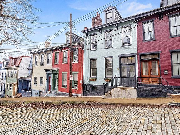 Located on a serene cobblestone lane in Historic Deutschtown, this charming brick duplex seamlessly blends 19th century allure with contemporary flair. This Row House welcomes abundant natural light through towering windows and illuminates vintage vestibule doors, hardwood floors, original fireplaces and banister and lofty ceilings. The main level apartment offers a cozy one bedroom, spacious living room, well appointed kitchen, tiled bathroom and laundry. Ascend to the upper apartment to discover an inviting parlor, stylish eat in kitchen with exposed brick, two updated bathrooms, a second story bedroom and a loft bedroom on the third floor with panoramic views of downtown Pittsburgh. Embrace leisurely walks in Allegheny Commons Park, visiting nearby museums, and savoring dining experiences in Northside restaurants. Whether as a magnificent owner occupied duplex or enchanting single family residence, this dwelling promises an urban lifestyle.