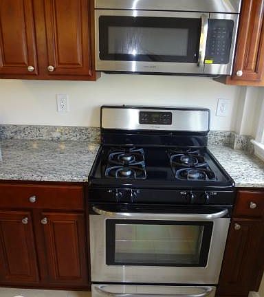 Tastefully remodeled end-unit townhouse incl. new kitchen w/ granite counter tops & stainless steel appl. & new ceramic flooring.Gleaming refinished hardwood floors. Crown molding, fresh paint thru-out Train gas furnace, new water heater,brush nickel light fixture,new deck,and 2 car rear parking pad.New front concrete front sidewalk.Large family room w/ new berber carpet.New ceramic bathrooms.