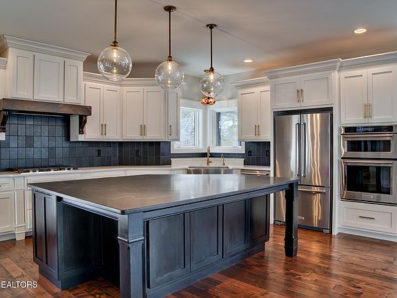 This beautiful 4 bedroom/ 4.5 bath contemporary style home is a can't miss for sure! sitting on 5 acres with breathtaking views of the Smoky Mountains and Mt. Leconte, you will be surrounded by a quiet country setting while being just minutes from the conveniences of downtown Sevierville, Pigeon Forge, & Gatlinburg. The soaring cathedral ceilings and floor-to-ceiling windows will welcome you upon entering the open floor plan of the main floor. Cozy up by the gas fireplace overlooking your mountain view in the living room or host all your friends and family in the expansive designer kitchen. Kitchen upgrades include: wet bar, wine cooler, massive kitchen island, granite countertops, stainless steel Kitchenaid appliances which consist of a gas stove, convection oven, refrigerator, & a single basin apron front kitchen sink. Through the kitchen you can access the screened in portion of the back deck. This section of deck has ceiling fans and a TV connection making it perfect for entertaining. Adjacent to the kitchen is the spacious walk-in pantry and laundry room complete with plenty of folding space, extra storage, a utility sink, and laundry chute. Just through the kitchen is a mudroom with even more storage and access to the 2-car climate controlled garage as well as access to the covered patio area. On the opposite end of the main level, passing the half bath, you'll find an office space and the owner's suite directly across the hall. In the oversized master bedroom, owner's have access to the back patio overlooking the expansive mountain views. Suite includes a large walk-in-closet, custom walk-in-shower, oversized soaking tub, and a double vanity. Up the stairs to the second floor you'll find two more bedrooms. Each with walk-in closets and en suite full bathrooms. The views from the second floor landing overlooking the living room and the glass windows shaping out the mountain views will take your breath away. Down two flights of stairs to the basement you'll find even more finished square-footage. You'll enter into an oversized bonus room which could be used as an extra office or playroom. There is also another bedroom and full bath! The finished area has tall ceilings and concrete stained floors. There is a 1 car utility garage that can be used for lawn equipment or a workshop. Also, there is an oversized storage area with more space than you can imagine! The walk out basement has a poured concrete covered porch (from deck above) to enjoy the scenery or easily access the fenced-in back yard. Outside, you will find landscaped grounds. The full deck across the rear of the home allows for endless outdoor entertaining opportunities!
