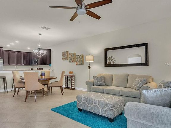 Beautifully town home in the much sought after Champions Gate community. This luxurious 3 bedroom 2 bath villa which offers an open, airy floor plan, is ready for a new buyer. Take advantage of this opportunity as an investment property to rent out or as a second home. Bring your suitcases because everything else is already there to enjoy. This home is filled with upgrades and tastefully decorated with plenty of space for guests. This resort style community has a 24 hr. guard gate and has an award winning 18 hole golf course, a 16,000 sq. ft. clubhouse with full service restaurant, movie theater, arcade, fitness center, and play room. It also features a resort style pool with private cabanas, lazy river, sand volleyball, tiki bar, and much more. This community is life at its finest! **This home can also be purchased without furniture**