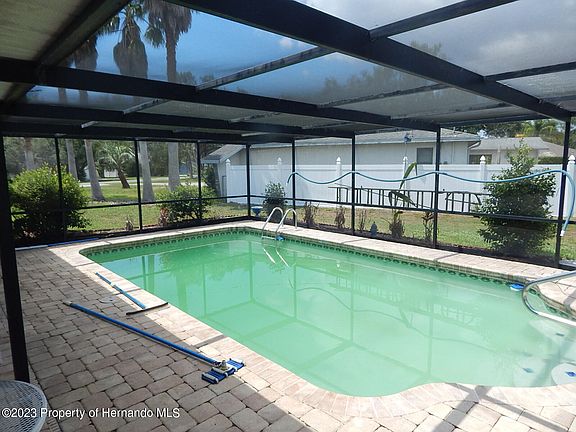 Spring Hill Pool Home on nice big well manicured lot. Pavers on driveway and pool lanai. Split floorplan with separate living and family rooms. Plenty of room to spread out and live comfortably. Lots of cupboard and cabinet space as well as counter top eating area. Big bedrooms with large closets. Beautiful large pool and covered and screened lanai. Home has city water and there is also a well for irrigation. Selling fully furnished.