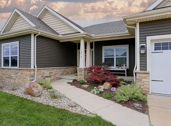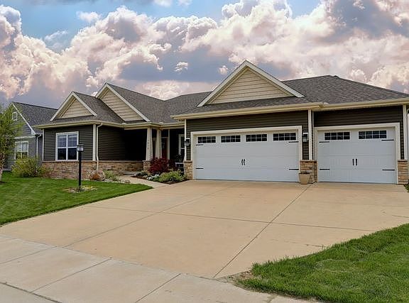 Exquisitely maintained, this better than new ranch has perfect updates like no other...AND NO NEIGHBORS BEHIND! Walking up, you will see the beautifully landscaped gardens and covered front porch. Inside you are greeted with a massive open concept with dining, kitchen, and family room all connected! Upgraded Maple flooring is stunning and compliments many features through-out the home. The stone fireplace, large island with seating, and additional eat in area in the kitchen work magically together with the stone countertops, backsplash, and beautiful cabinetry. Huge master suite features walk-in tiled shower, tray ceiling, freestanding tub, dual vanities, and a spacious walk in closet. Two other large bedrooms are on the main level. Down in the recently finished basement, there is an additional 4th bedroom, a full bathroom, a huge rec/game room, an office, and a state of the art theater room! Newer stamped concrete patio, and endless southern views will take your breath away!