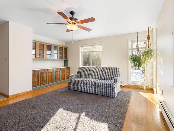 Charming and move in ready, this darling contemporary ranch is beautifully located on a large 7.3 acre parcel. Offering room for gardens and outdoor activity this wonderful three bedroom, one and a half bath home has an eat in kitchen, dining room and spacious living room with lovely built in wall unit and hardwood flooring. The large primary bedroom has hardwood floors, ample closets and and en-suite half bath. There is a large mud room with direct access to the attached two bay garage and another screened in room on the back of the home for relaxing in the warm summer months. The unfinished basement makes an ideal space for a workshop or hobby space. Call today for a showing.