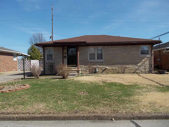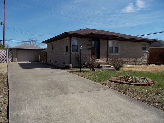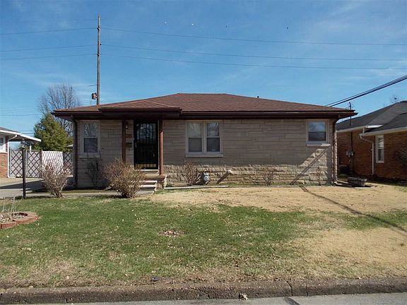 Amazing Three Bedroom, One Bath Bedford Stone House. Beautiful View of Golf Course from the two backyard patios. Detached Block 1.5 Car Garage, with opener, newer door, shelving and storage up above. Large Eat-in kitchen with appliances.. Laundry room off kitchen including washer and dryer. Living room has beautiful corner windows. Per owner hardwood floors under all carpet. Full bath in hallway to accommodate all the bedrooms. Bonus Family room in back of home with free standing wood burning fireplace. Great windows to sit and enjoy the nature of the backyard. Extra wide concrete driveway with privacy fence on side of yard, chain link fencing along the back to enjoy the view. Home is well maintained just needing a touch of paint to brighten things up. Newer roof, windows, A/C, furnace, ceiling in family room and flooring in family room. Owner is offering AHS Home Warranty with sell of home.