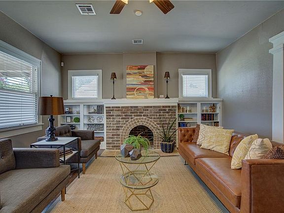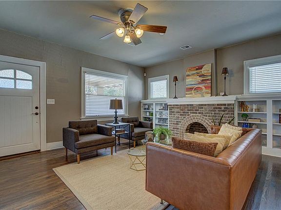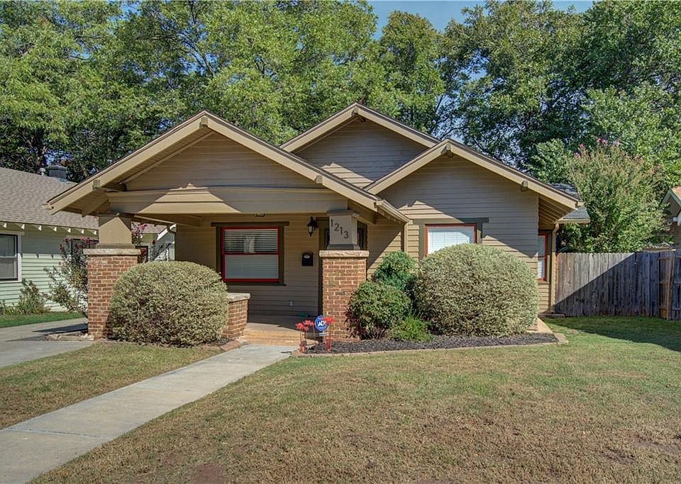 Check out this beautiful Craftsman Bungalow close to Western Avenue District and Classen Curve! As you walk in, view the living room with the detailed wood molding and trim work and brick fireplace. Make note of the dark stained hardwoods throughout the living and dining areas, high ceilings and the seamless flow to the kitchen, perfect for entertaining. Kitchen features granite countertops, stainless appliances, gas range, pantry, built-in wine rack and breakfast bar. Dedicated utility room right off the kitchen. The large master bedroom features an en suite bathroom and walk-in closet with custom built-ins. Second bedroom is a great size with great closet space. The third bedroom with glass paned French doors could be used as an office. Enjoy evenings on the covered front patio. There's also plenty of space in the backyard with storage shed. 2020 updates include: Repainted Exterior, repointed front porch column, tiled floor in kitchen, roof/attic rebracing and HVAC tune-up service.