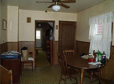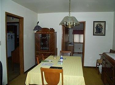 Lots of room! Enclosed front porch, covered rear porch. Nice sized rooms with rounded archways. Very nice first floor bath with good storage. Full bath on second floor forbedrooms. Pull down attic stairs. Vinyl siding and replacement windows. Steel chimney liner. 2 car garage accessed by alley.