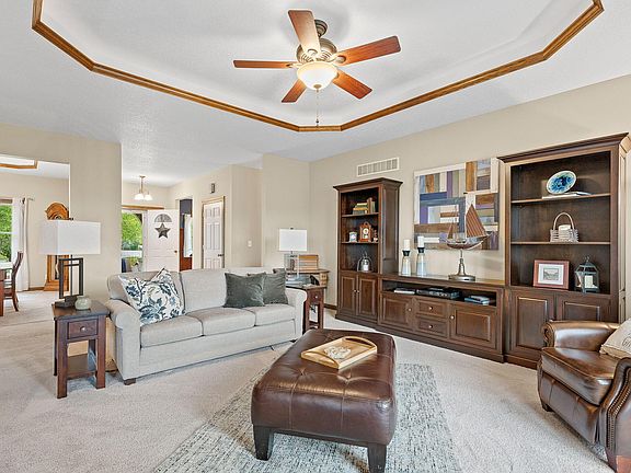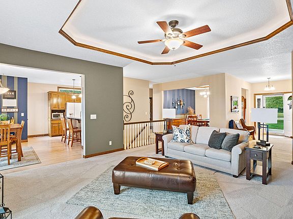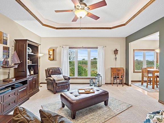 STUNNING ACREAGE RETREAT. Located on a peaceful cul-de-sac with easy access to Highway 30, this impressive custom home offers nearly 3000 square feet of expertly finished living space and 2.77 acres of nature's beauty. Stepping inside, you're greeted by a welcoming entryway that opens to a comfortable family room with large windows overlooking the greenspace beyond. Feel like a gourmet chef in this custom kitchen with Swan Creek cabinets. Even the simplest of meals will taste better when made with fresh fruits and vegetables from your private garden and orchard. On those special occasions, the formal dining room accommodates all your family and friends. The master bedroom suite offers a peaceful retreat with two separate walk-in closets and a spa like bath with jetted tub. Just off the living area, a spacious private office can easily be used as a second bedroom. Down the hallway, a man floor laundry and half bath are conveniently located near the garage for easy cleanup. Downstairs, the finished lower level is perfect for entertaining with a family room, wet bar, two large bedrooms, a full bath and walk out access to the landscaped terrace with fire pit. For the hobbyist, there is room for all your gear with two separate garages. The upper garage easily accommodates two cars and the lower level garage offers additional space for a boat, workshop, or storage. Recent updates to the home include a new roof and geothermal heating and cooling, keeping your energy bills low throughout the year. If you are looking for the perfect acreage with a blend of nature and contemporary living, come check this one out. It just may be your perfect acreage.