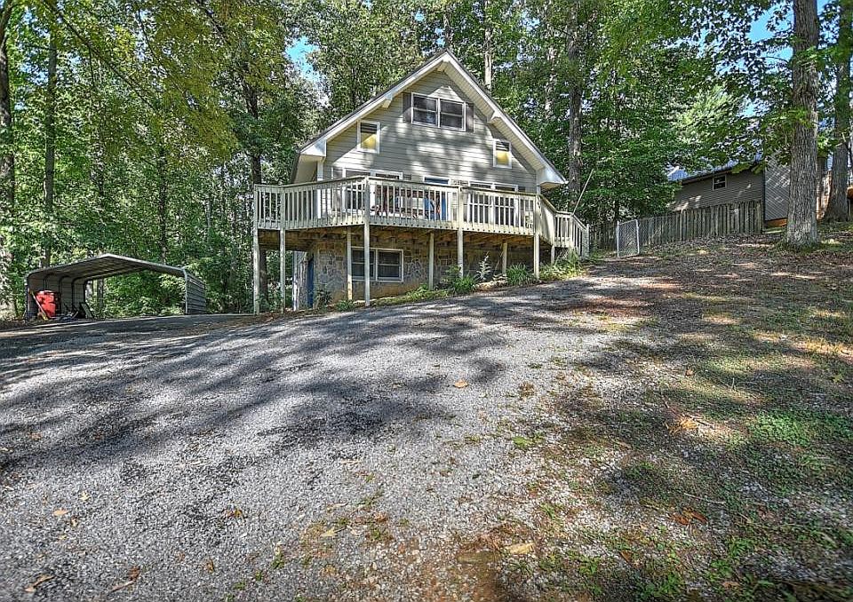 Awesome house that sits back in the trees offering 3 bedrooms, 3 baths, living room with fireplace, office, kitchen/dining room combo and family room. Master on main and unfinished workshop area in the basement. Wrap around deck. Lots of room to grow in this one!