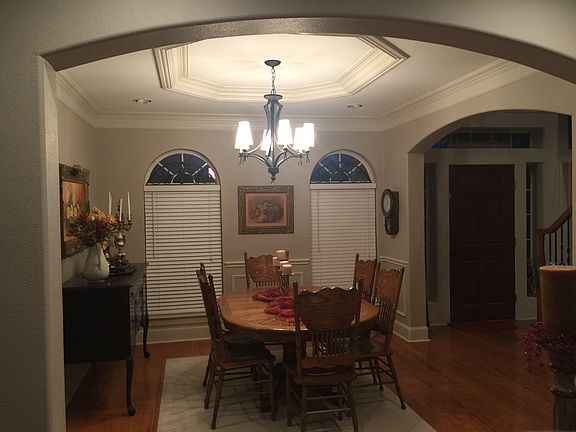 Very prestige home on corner lot over looking private golf course with easy golf cart access, secluded backyard, large pecan trees and a large covered deck overlooking the 15th green. Open floor plan with balcony views, triple crown molding, granite counter tops, kitchen aide appliances and built-in wine cooler! Built in security system and lawn sprinkler system. New lake is being constructed just across the highway and will only increase the value of This property!!! Come and see Golf course and country living at its best!