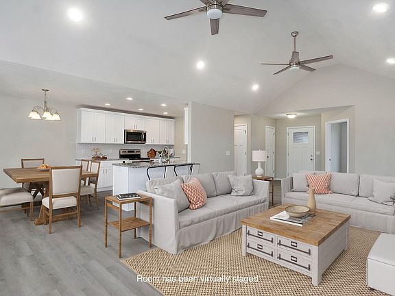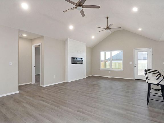 Beautiful ranch style, 4 bedroom, 2 bath, 2 car garage with split bedroom floor plan that includes a 6ft shadowbox privacy fence! Cabinets are soft close white shaker-style with spice rack, cookie sheet, and trash can pullouts in kitchen. Luna Pearl granite in kitchen & bathrooms, stainless appliances; electric range, dishwasher and over-the-range microwave. Living area features an electric fireplace, vaulted ceilings and back door that leads onto the 10x16 covered patio. Primary bedroom features a tray ceiling and ensuite bathroom has a soaker tub, step-in shower with glass sliding doors, dual sinks, walk-in closet and linen closet (wooden shelving in closets). Interior paint color is Agreeable Gray, and hardware finishes will be brushed nickle doorknobs, drawer pulls and lighting. Flooring is LVP in all areas (NO CARPET). Exterior is black brick front with charcoal mortar, and white siding on back and sides. Garage is fully insulated and crawlspace has a vapor barrier. One year builder warranty included!