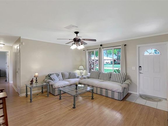 Welcome Home! You must see this Beautifully Updated 3 Bedroom Home with an Open Floor Plan. Features include an Updated Kitchen with Granite and Wood Cabinets, Updated Baths, Tile and Laminate Floors (No Carpet), New Roof 2016, New Air Conditioner 2017, New Electric Panel & Wiring 2019, Brand New Interior Paint, Windows Replaced in 2013, and Home Repiped in 2013. You will Love the Large Screened Lanai overlooking a Huge Backyard with Privacy Fence, a Shed for Extra Storage, and plenty of room for a pool. All Bedrooms, Living Room, Dining Room and Lanai are equipped with Ceiling Fans. This Move-in Ready Home is located in a Quiet Neighborhood close to everything, dining, shopping, schools, and has easy and quick access to Fort Myers. NOT IN A FLOOD ZONE & ALL UTILITY ASSESSMENTS ARE PAID. This Home is Priced to Sell!
