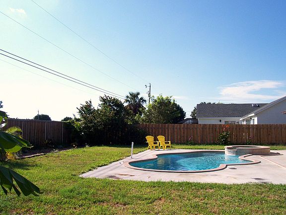 Great Investment Property, leased and ready to go. Beautiful Tropical landscape surrounds this 3 bed, 2 bath, 2 car garage, Pool and spa home. Located in a well established neighborhood. Many upgrades in 2009 include: Pool/Spa, A/C + Heating unit w/ UV light, Alarm System, Custom fit wood blinds, privacy fence, new sod and Perennial flowers. Kitchen appliances + Ceiling Fans convey. Home is close to schools, shopping, bridges and entertainment. Utility are in. Buyer to assume the balance of city utility assessments, please verify the payoff amount with city.