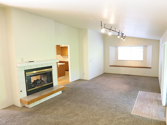This 3 bedroom 2 bath house is move in ready. Wood floors, vaulted ceilings and a double fireplace make this feel like home. Large covered back patio overlooking private backyard with raised garden beds. Spacious 2 car garage and plenty of room for parking. Rhienhart park and the Rogue River are just down the road.