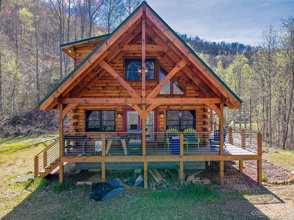 This new log cabin with modern rustic finishes nestled in the Blue Ridge Mountains of Sylva is calling you home! You'll love the spacious open floor plan that offers main floor living with a gorgeous fireplace and large primary bedroom. Upstairs you'll find an open loft, large second bedroom and bathroom. Spend your evenings taking in a sunset on the oversized porch. It's perfect for entertaining, cookouts or enjoying the sounds of nature. Catch fireflies in the front yard or enjoy s'mores by the fire pit. Minutes to Franklin, Dillsboro and Sylva, this stunning property is ready for you! Being sold mostly furnished.