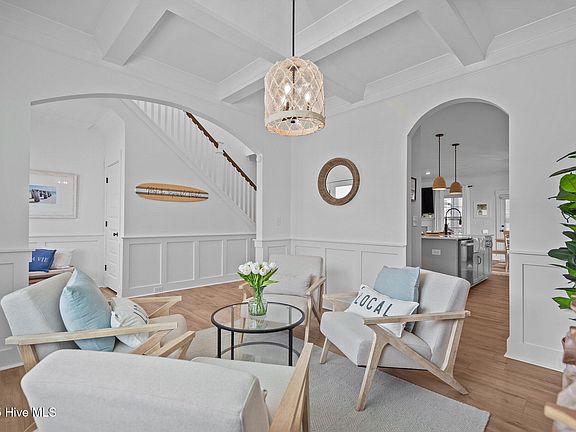Gorgeous, almost new 4 bedroom, 3.5 bath home within minutes to Wrightsville Beach! As you enter this light filled home you will immediatley notice the gorgeous ''white oak'' inspired LVP floors! This home gives off beautiful ''coastal vibes and shows in ''model like'' condition! The open floorplan is perfect for entertaining. The lovely dining space has a coffered ceiling & is currently being used as a sitting area. The well appointed kitchen is open to the family room and has a gas range, stainless steel appliances, pretty tile backsplash, farmhouse sink, large island, pantry and pristine quartz countertops. The breakfast nook is a nice size and opens to the screen porch area. The family room has a gas fireplace and view into backyard. The owner's suite is on the main floor and features a tray ceiling, ensuite bathroom with a walk-in shower, garden tub, dual vanities and large closet. The laundry room has an adorable, built in ''pet'' space for furry friends. Notice the real wood treads on the stairs. Upstairs you will find a large loft space & 3 additional bedrooms all with nice size closets. Two bedrooms share a ''ensuite'' bathroom & there's another hall bathroom as well. All bath tubs have beautiful tile inserts. There is new upgraded carpet in the 2nd floor bedrooms. Outside you can entertain on the screen porch and extended patio space. The fenced yard is perfect for pets and play! Both the front & rear yard is sodded and has irrigation. This home is located within minutes to Airlie Gardens, the greenway trails- so enjoy biking, jogging & walking to Wrightstville Beach and the sidewalks just make neighborhood strolling perfect! Foodies & shoppers will love that this home is conveniently located within minutes to the BEST shopping & restaurants! This home is better than new & gorgeous! You are not just buying a house though you are buying the ultimate ''coastal lifetsyle'' with proximity to the beach and outdoor activities!''Live where you Play'!