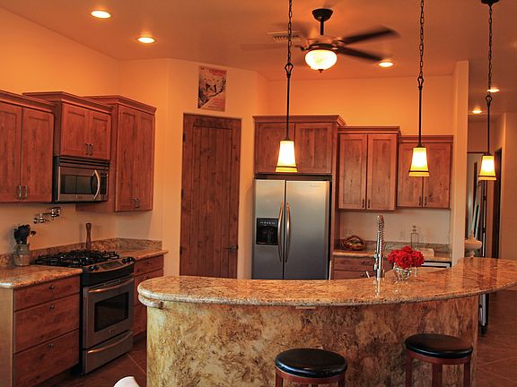Located in the beautiful Village of Oak Creek. Custom, exceptionally maintained, one of a kind residence with lots of extras. A dramatic open floor plan with 10' ceilings, venetian plaster, custom stamped concrete floor, 8' solid knotty alder doors and large windows make for an impressive home to live, work, and entertain in. Red rock views. 1957 square feet, 3 bedrooms, 2 bathrooms, Stunning Floors throughout, Split Bedroom, Open Floor Plan, Custom Kitchen with Knotty Alder Cabinets, Spacious Curved Island and Wine Fridge, Granite Countertops and Stainless Steel Appliances, Luxurious Master Bath, His and Her Sinks and Large Jacuzzi Tub, Large Walk-in Seashell Shower with Dual Shower Heads, Large Master Suite with Walk-in Organized Closet, Two Guest Bedrooms with Large Mirrored Organized Closets, Venetian Plaster Accent Walls, Private Backyard Oasis with Water Feature, Custom Sound System throughout House and Backyard, Oversized Two Car Garage, Central Vacuum, Ceiling Fans Throughout Home, Custom Honeycomb Top-Down Bottom-Up Pleated Shades throughout, No deferred maintenance, Only minutes from dining, shopping, schools and three golf courses. Professionally appraised at $450,000 Neighborhood Description The neighborhood is very safe and low key.