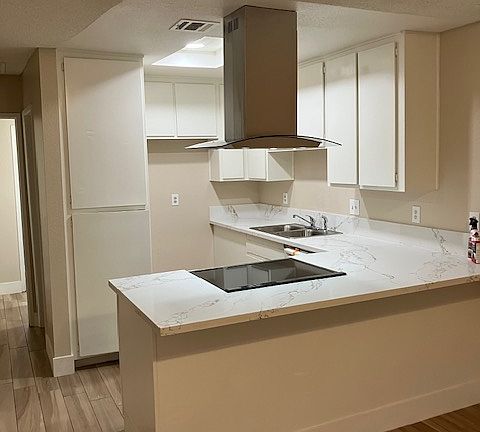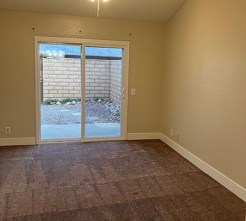 The apartment has been recently remodeled. It has cathedral ceilings, new tile and carpeted floors, new paint, new beautiful kitchen countertops with new range and dishwasher, blinds, washer & dryer hook-up, and a private block wall patio.