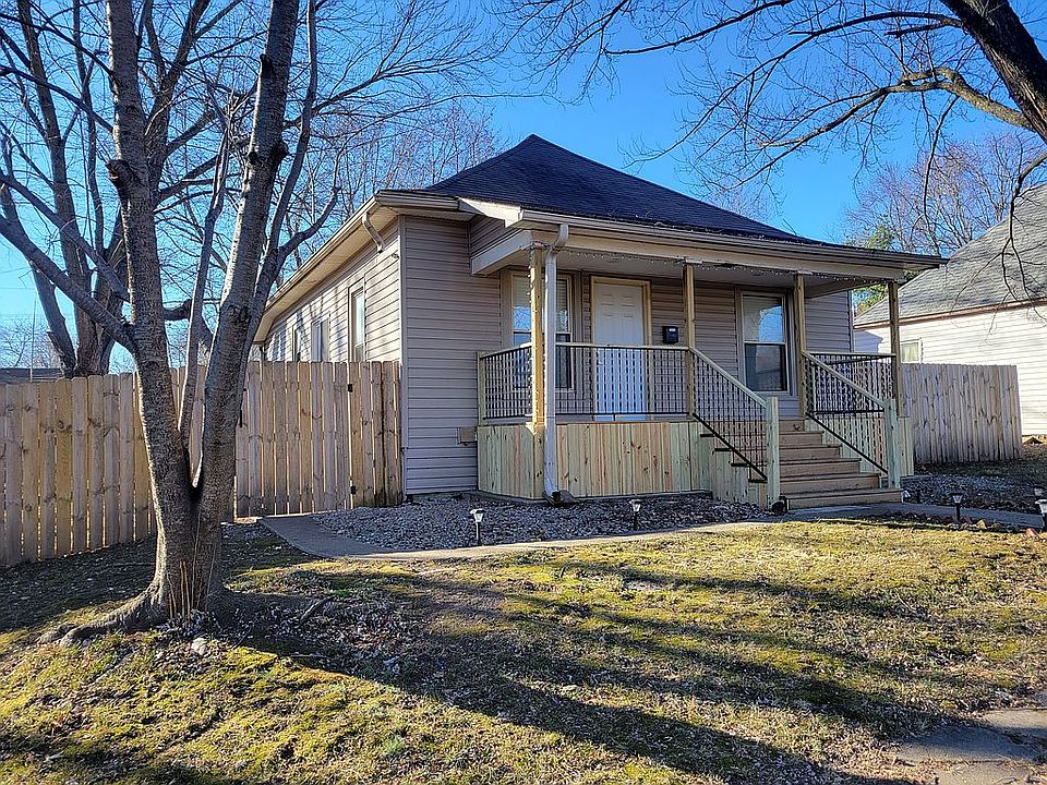 Newly remodeled home with an open concept. All new laminate flooring and tile in the bathroom. All new paint. Beautiful no new covered porch. ?Crown Molding throughout. Nice wall colors. New thermal-pane tilt in windows. Home sits on extra lot with detached garage and off street parking. Updated wiring, 200 Amp. New plumbing in bath. Roof New in 2006. Basement for storage and shelter. Storage shed. ALL ELECTRIC