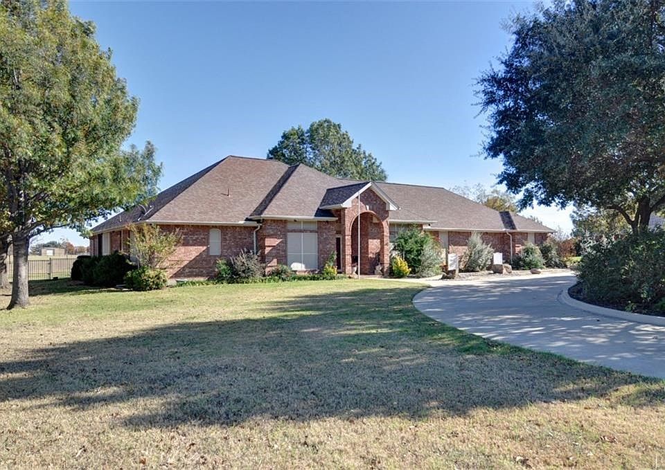 Come enjoy the country life but live minutes from the city*Well maintained one-story with 4 good sized bedrooms, 3 baths, 2 dining & 3 living areas*Island kitchen has breakfast bar, & recent updates include stove top, microwave & Bosch dishwasher*Enclosed sunroom for extra entertaining space*2 story insulated 30x45 workshop with 2 bay doors, electricity, 220 outlets, bathroom*Additional storage is a 10x16 bldg*Ample space for RV or boat parking*2 heat pumps were installed in 2016*Home sits on 2.34 acres and has been landscaped with tree lighting & flowering bushes, 11 pecan trees and circular driveway*Horses permitted*No HOA*Come see this wonderful home located just 5 minutes from the Chisholm Trail Parkway