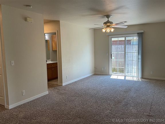 Must See 2 Bedroom, 2 Bath townhouse in Broken Arrow...Living Room has door to back yard and ceiling fan...Tiled Kitchen has Dining Area...Kitchen includes: Range/Oven, Dishwasher, Garbage Disposal and Microwave...Carpeted Bedrooms with Ceiling Fans. Primary bedroom has Walk-In Closet and Private Bath w/Walk-In Shower...Other bedroom has separate closets. Laundry Area...2 Car Garage...Back Yard with Mature Trees...Backs up to a Green Belt...Lawn Care is Included... NO FENCE. NO CATS. Pet restrictions/deposit may apply. $35/month pet rent per dog/$400 deposit. No Smoking, No Sublease, No Waterbeds.
