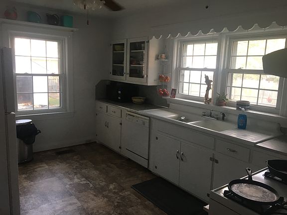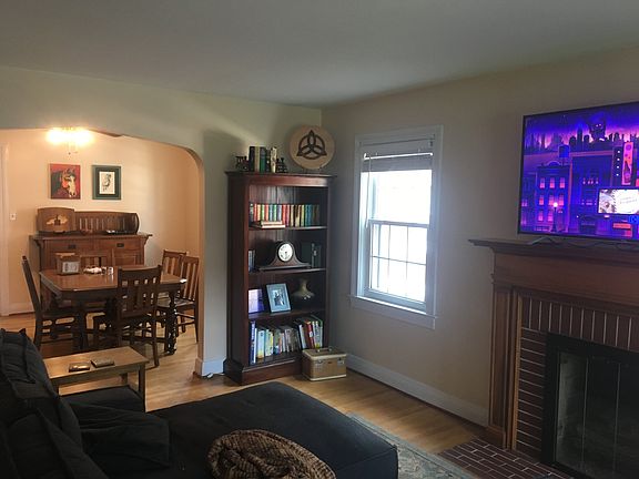 Welcome to this spacious home offering one floor living with approximately 1,484 Sq. Ft. of charming living space and an enormous unfinished basement. The formal living room includes a beautiful wood burning fireplace with gas starter, lots of natural sunlight, over-sized arched doorway, and opens onto the delightful enclosed front sleeping porch. Continue on to the formal dining room, which features an original natural wood built-in with glass doors, along with a ceiling fan and overhead lighting. The white kitchen has retro counter tops, a double apron sink, glass faced cabinetry, ceiling fan with light kit, white appliances with gas range, and could accommodate a small eat-in table if desired. There is also a laundry hook up option in the
