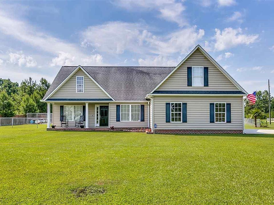 Don't miss out on this fantastic 4 bedroom/ 2 bath home situated on over an acre of land. This bright and airy home is truly impressive. Upon entry from the covered front porch, 11' foot vaulted ceilings and plenty of natural sunlight help you appreciate the open feel of the kitchen and living area. A formal dining room adjacent to the kitchen is complete with chair rail and hardwood flooring. The spacious Carolina room is the ideal spot for morning coffee and opens up to an oversized brick patio. The massive fenced in backyard is perfect for summer grilling and entertaining. The downstairs Master Bedroom Ensuite features a large walk-in closet, shower/garden tub, double sinks and new tile flooring. Two additional bedrooms are located on the main level. The 2nd floor bedroom offers an abundance of space and a walk in attic through the oversized closet. The HVAC system is controlled by an energy saving Nest thermostat. With no HOA, you have endless possibilities. This captivating home is nestled in the Longs community and is just minutes away from the beach, shopping, golf and dining.