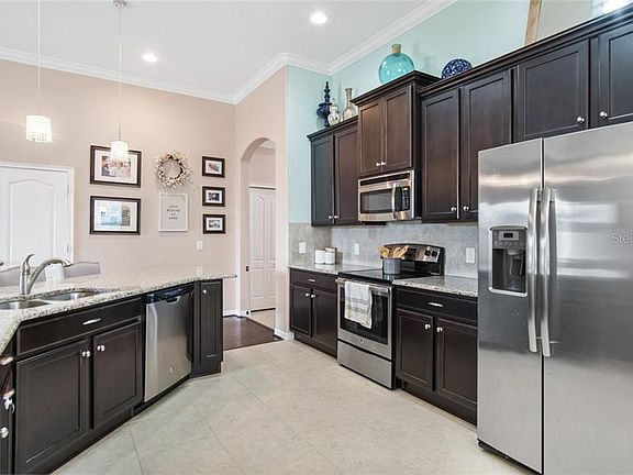 This charming home offers 4 bedrooms, 2 full baths, 2,018 square feet of living space and a 2 car garage. The upgraded professional landscaping welcomes you into this home with a covered front porch and a flow of hardwood floors and heavy crown molding as you enter inside. The kitchen is the perfect gathering space of the home and has granite counter tops, upgraded 42' espresso cabinets, stainless appliances, glass cooktop, custom pendant lights, crown molding and recessed lights. There's also a snack bar that's perfect for entertaining. The living room has warm wood floors, plant shelves and ceiling fan. The formal dining room is large enough for a big family gathering and has a tray ceiling, crown molding, wood floors and chandelier. The master bedroom is very spacious and has a tray ceiling, brand new carpet, crown molding, bay windows and a private ensuite bath with double granite vanity. Ceiling fans and new carpet in all bedrooms. Spacious laundry room with custom storage cabinets makes it easy to keep neat and clean. The covered back patio is great for grilling and other outdoor activities. Spacious back yard that's completely private with vinyl fencing. Quiet neighborhood and convenient to schools, shopping and great restaurants. Easy access to I-75 and crosstown expressway. Move in ready for your enjoyment.