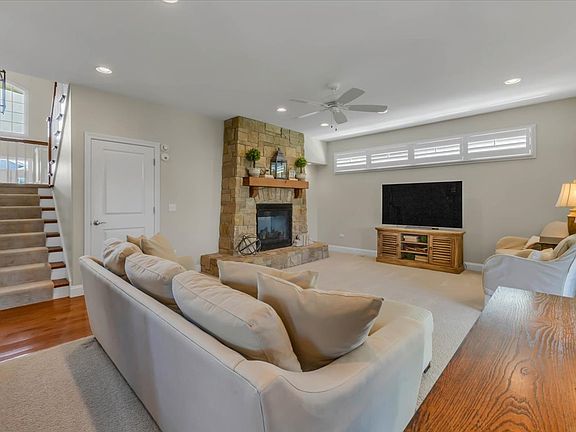 This is a floor plan like no other! This corner lot house boasts a stunning foyer, five bedrooms, five full bathrooms, hardwood floors, a two-sided fireplace, an inviting sunroom, and plenty of natural light. The light and bright kitchen with a massive island is sure to be a show stopper. Separate eat-in area gives access to the cozy brick paver patio surrounded by mature trees. Enter from the oversized three car side garage to a mudroom area, full bathroom, and first floor laundry with plenty of cabinet and closet storage. Updated light fixtures, neutral paint colors, high ceilings, plantation shutters, and custom blinds throughout the home are sure to impress. New ACs and furnaces (2021), Rainbow playset (2019), irrigation system with rain sensor and soaker hose, double ovens, finished bonus room above the garage, separate sitting room off the master bedroom, full basement bathroom, professionally landscaped, built-in playhouse, you name it, this house has it! Located close to parks, walking paths, and equestrian center. Nothing left to do but move in! July closing for prospective buyers. Pool table in basement included as part of home purchase