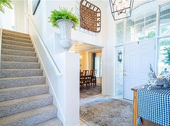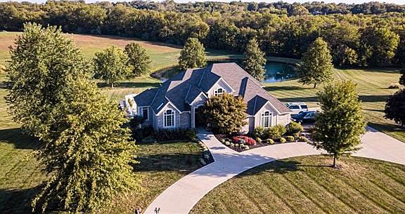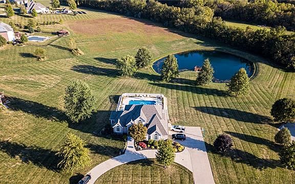 Stunning, custom-built home in the gated subdivision of Oakmont within the Savannah School District. This 5+ bedroom home boasts large windows with beautiful views of the pond and pool, tall ceilings throughout, main floor bedroom, updated open kitchen with a fireplace that looks through to living room, large walk-out basement with bar. Other amenities include: Salt-water inground pool, 3/4 acre stocked pond with dock - perfect for entertaining!