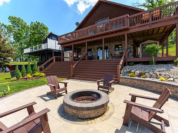 Gorgeous waterfront home located on Lake 3 of all sports Pine Lake! Pine Lake is a friendly lake community with 4 interconnected lakes totaling over 660 acres making this an amazing place to live! This special home has 52 sq feet of private sandy lakefront footage. Over 2000 sq feet of deck space to take in the spectacular lake views is sure to blow you away! The home is beautiful inside with grand wood timbers, a stone wall and an open concept of living. The kitchen, living and eating area have incredible lake views with plenty of windows and new sliders out to the deck. The kitchen features granite countertops and stainless steel appliances that stay! You will find a pantry, 2 main floor bedrooms and a lovely full bath. The lower level is sure to please. This space is fantastic with a family room and an incredible new bar area! The bar features beautiful cabinets, granite countertops, a full refrigerator and wine refrigerator! The slider is new as well and takes you out to enjoy the lower deck and sandy beach! The primary suite is lovely with a large walk in closet, laundry space with a newer washer and dryer that stay and a charming updated full bathroom! Outside you will find a new firepit area! This features elegant stone pavers, a built in firepit and retaining wall. The landscaping has been professionally finished as well! Other improvements include: roof, gutters, AC, furnace, water softener, iron filter, water heater, and the owners added the garage! The garage has oversized doors for easy storage of larger trucks or boats. There is an additional storage shed that stays as well! All you need to do is move right in and start enjoying the lake! Kalamazoo is a short 30 minute drive to the south, Grand Rapids a 45 minute drive to the north, Battle Creek a 30 minute drive to the southeast and Chicago is approx a 2.5 hour drive! Pine Lake is like no other and offers a peaceful retreat from the hustle and bustle of life. Make your appointment today to see this special waterfront home!