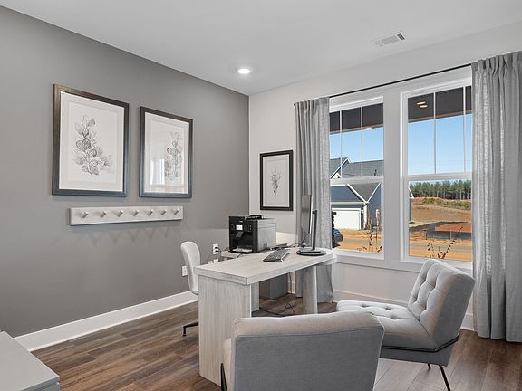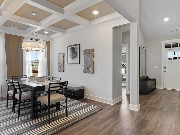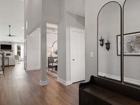 Ranch style home with flexible design! The covered front entry leads into the open concept living featuring a kitchen with an oversized 8-foot island overlooking the breakfast area and family room with fireplace Coffered ceiling formal dining room The first floor primary suite offers a walk-in closet, and a primary bathroom with a dual vanity, and tiled walk-in shower The main level also boasts a secondary bedroom, a full bathroom and a generous laundry room The grand oak staircase leads you to the second floor bonus room and third bedroom with full bathroom Rear covered porch