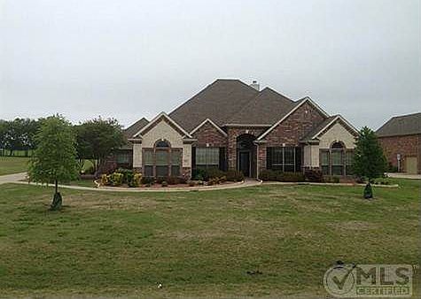 Enjoy country living on over an acre in Forney ISD, outside city limits with lower taxes! Bright, open entry with large flex room (used as study), & formal dining. Wood floor throughout entry, flex room, dining, family room & hallways. Family room boasts stone wood burning fireplace & custom-built shelving. Kitchen - lots of cabinets, granite c-top space, stacked oven, microwave, smooth top cooktop. Spacious master bed, master bath - dual sinks with his and her closets! 2 large secondary beds with full baths nearby complete interior of this home. Long âbasketballâ driveway leads to an oversized 3 car side entry garage. Covered back patio overlooks acreage, no back neighborâs, property backs to a private farm.