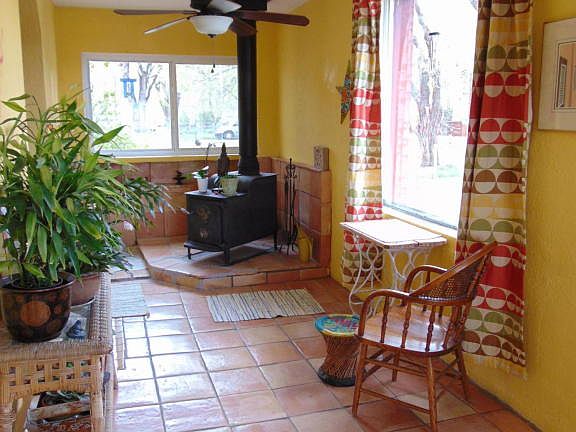 A must see! **BONUS - 3rd bedroom area is a non-conforming room that may used for additional sleeping space. Also includes the perfect guest house or multipurpose studio.** This unique and cozy farmhouse has the character you've been looking for. Upon arriving at the property you will notice the pop of red color tucked underneath mature trees and surrounded by lovely landscaping. Through the front door is a well lit entry offering natural light for planting as well as a wood burning fire place and tile floor. Off of the foyer you may access the laundry room which has also been purposed as an additional sleep space with a built in twin bunk bed. You may also proceed through the living room into the updated and modernized kitchen and dining area.