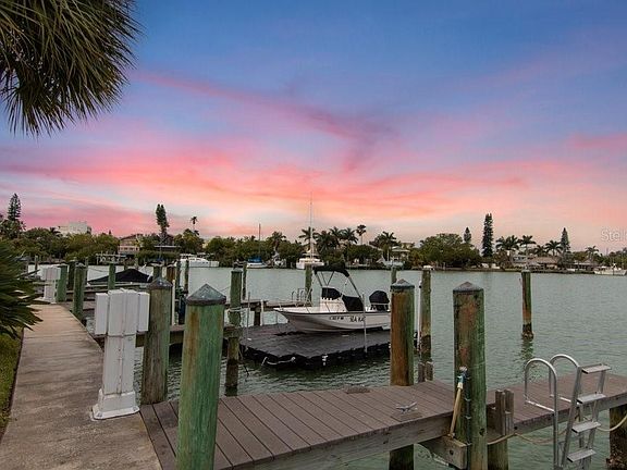 Welcome To PARADISE! Grab your favorite beverage and kick your feet up on any one of your three unobstructed water view patios as you watch the dolphins play in the intercoastal waterway. This is island living at its best! Short walk to the beach, restaurants, bars, and Treasure Island Boardwalk. Short bike ride/drive/paddle to the world famous John's Pass. Kayak/paddle board launch in your back yard; no wait ON PREMISES DEEP WATER BOAT SLIP available for up to 55ft boat and 5 minute no-fixed-bridge boat ride to the pristine Gulf of Mexico! Beautiful Roselli neighborhood park across the street, with tennis courts, beautifully paved walking path, batting cages, basketball hoops, new playground and dog park. This unique TRI-LEVEL townhouse style condo with attached oversized garage feels like a private home with its mature Banyan trees and ample parking for you and your guests. This open concept home boasts hardwood flooring and tile throughout, granite countertops, an island kitchen with generous storage and stainless steel appliances, and air conditioned/heated BONUS ROOM you can use as an office, guest room or playroom on the first level with sliders out to water view patio. Large master suite with jetted tub and walk-in closet and morning coffee/evening cocktail sunset balcony with AMAZING WIDE CANAL water views. This is THE ONLY waterfront home available on the Island at this price-point. You will be blown away by the beautiful water views from all three levels. 2 new AC units, new pewter colored roof coming Spring 2021 and the Roof Assessment has already been PAID IN FULL. NO PET RESTRICTIONS (breed, size or age)... so bring the whole family! This home absolutely WILL NOT LAST so come and take a look today!