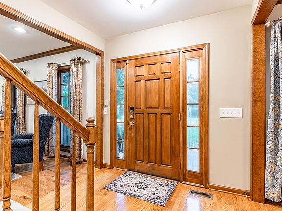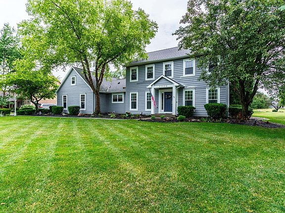 This beautiful and well-maintained house encompasses almost 4000 sqft. The house has had some recent upgrades, including new furnace & A/C, new garage door opener, new double sump pump for peace of mind, new hardwood and carpeting, smart home updates of a Ring Doorbell & Ecobee Thermostat, replacement of siding, new upstairs bedroom lighting, new electrical outlets and switches, and new interior paint. A variety of options for entertaining family and guests are available, from the spacious formal dining room, a wet bar, an open concept kitchen and family room with cozy fireplace, separate living room, and sophisticated outdoor space. Upstairs, the spacious main bedroom suite has a generous bathroom and walk-in closet. The second and third bedrooms are larger than the norm and share the second upstairs bathroom. The fourth bedroom, which is located on the main floor, could also serve as a private office/den. The 1250 sqft finished daylight basement is large and grants tons of versatility. Relax outside, taking in the picturesque view of a pond and trees, while on the tiered stamped concrete patio with pergola and sunscreen. Unleash a little of your inner gardener with a prepared, raised garden plot near the pond. The neighborhood perks include heated pool, access to Aboite Trails, scenic neighborhood paths, and quick access to shopping. Don't miss this opportunity to make this house your new home!