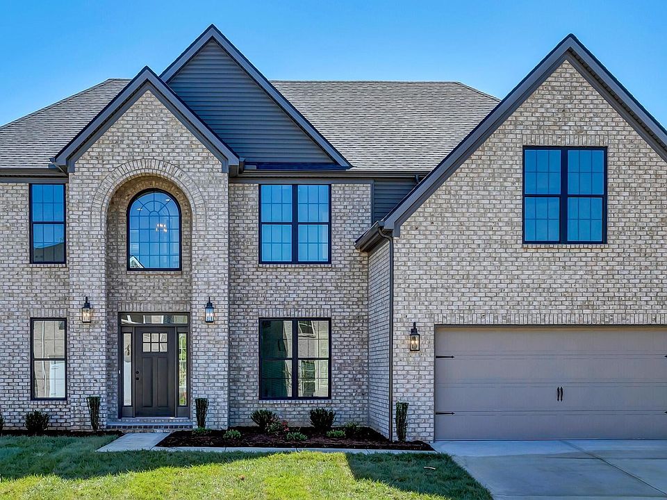Parade Home 2024. The Hudson B is an elegant two story home combining traditional, formal styling with great livability with 5 bedrooms and 3 full baths. A two story foyer with a balcony overlook creates a dramatic entry. Nine-foot ceilings are standard throughout the first floor, which has formal living/dining and flex room/office with french doors plus a family room with an impressive two-story bay window, and gorgeous two-story stone fireplace flanked by built-in bookshelves. This home has a first floor guest bedroom with adjacent full bath with walk-in tiled shower. The kitchen includes a large quartz island with counter seating and farmhouse sink, huge walk-in pantry, and separate breakfast area. This kitchen has stainless appliances including double ovens, gas cooktop, chimney hood, microwave drawer and french door refrigerator. The oversized mudroom/utility room combination includes a separate coat closet, drop-zone unit and built-in folding area. The upstairs primary bedroom suite has a spacious separate sitting area, and french doors open to the luxurious bath, which includes dual walk-in closets, separate vanities, and a platform garden tub and oversized tiled shower. Home not available to close until after 10/30/24.