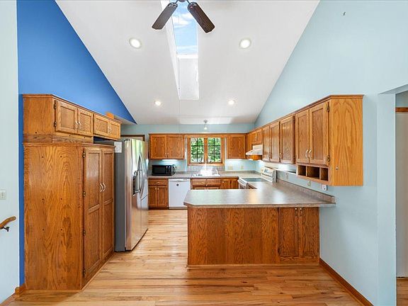Location location location! This home has so much to offer, a view of Orchard Lake, a charming three-season porch, gardens, a half-acre lot with beautiful landscaping. Boasting a main-level primary bedroom with built-in storage, and an accessible ramp, it's designed for convenience. Notable features include a 50-year stone on steel roof, ample kitchen storage, hardwood and LVT flooring, and vaulted ceilings. The tankless gas water heater, main-level laundry, and wrap-around deck with a gas line for a grill add practicality. A furnace humidifier ensures comfort, while the lower-level hot tub room provides a space to relax. This home combines aesthetics, functionality, and relaxation in one package.