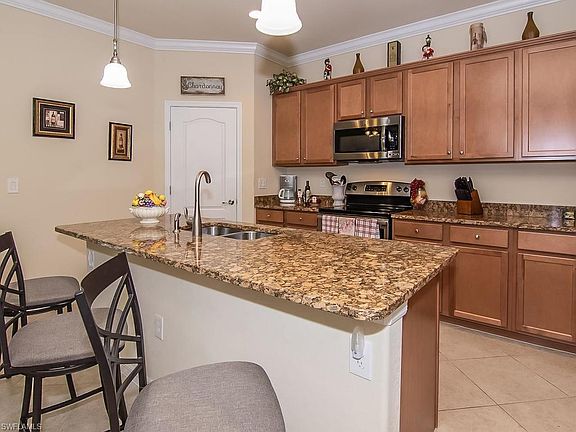 Beautiful LENNAR home built in 2015 in Daniels Preserve, this home is 25% stronger than an 05 model per the Lee County building dept. This home is ONLY THREE YEARS OLD! with many upgrades such as crown molding, granite in the bathrooms, a beveled glass front door, a brick paver driveway and an extended brick paver lanai. Featuring TWO Master Bedrooms, ONE Guest Bed/Bath,the Den features French Doors.The "Trevi" floor plan offers a large open great room, lovely granite kitchen with walk in pantry, and large granite island with stainless steel appliances. Enjoy beautiful Sunsets and a Serene Lake View from the extended lanai. This home includes the NEXIA HOME INTELLIGENCE SYSTEM which allows the homeowner to control all elements of the home including lock/unlock doors, lights on/off and temperature control remotely. Residents have to ability to obtain a Golf and/or Tennis memberships at the World Class Gateway Golf and Country Club. The Daniels Preserve Community and Gateway feature a playground and picnic area, volleyball and soccer field, dog park, lap pool and BBQ area. Located within 15 minutes to Southwest Florida International Airport and only 10 minutes to I-75.